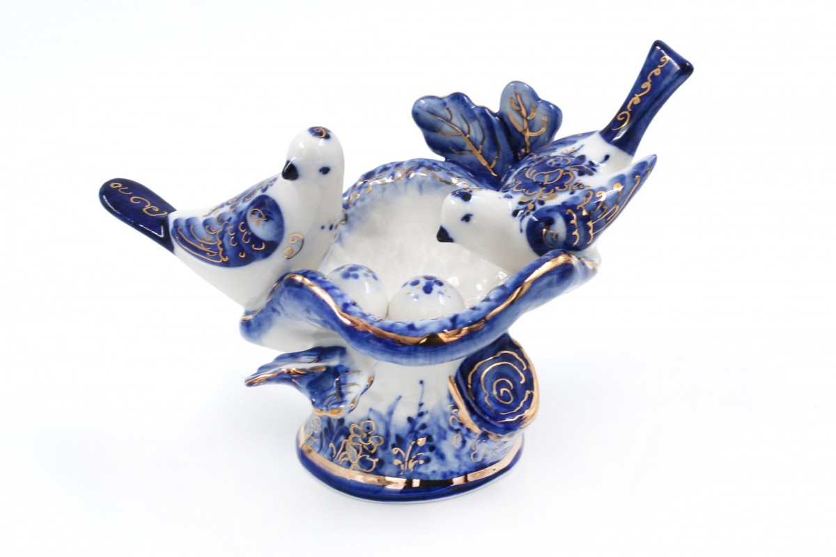 Очень интересное изделие в гжельском исполнении. Автор композиции Федотов А.Н. — заслуженный художник РФ