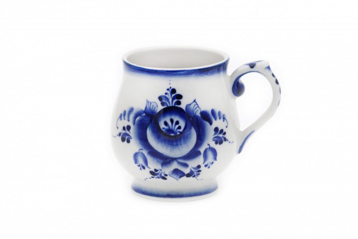 Небольшой бокал в виде бочонка с красивой гжельской росписью. Украсит любой стол.