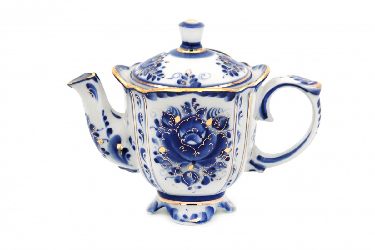 Красивый удобный заварной чайник, декорированный золотом. может использоваться в сервизах.