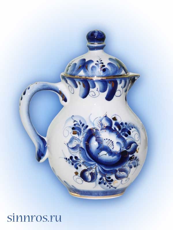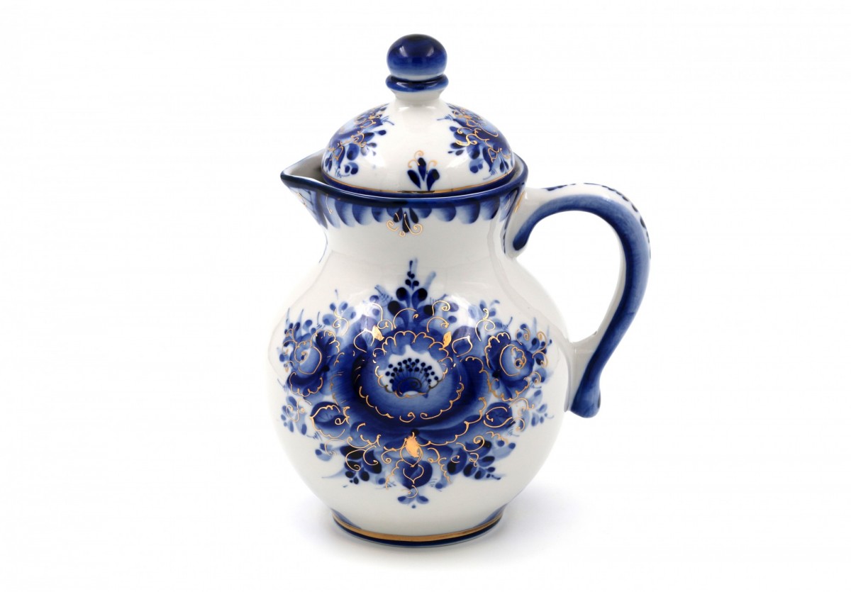 Красивый классический кувшин. Роспись кобальтовая дополнена золотом, что придает изделию выразительность и красоту.