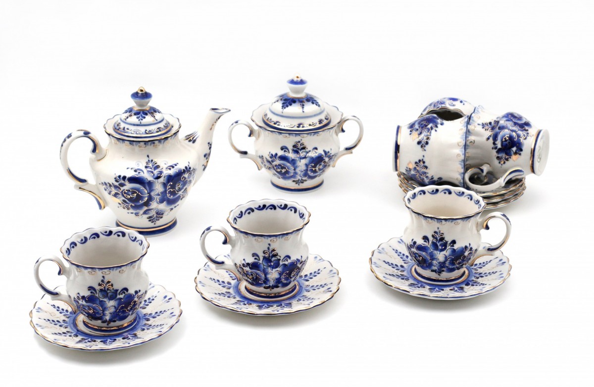 Красивый чайный сервиз. Роспись здесь светлая, поэтому золото великолепно дополняет и значительно украшает этотсервиз.