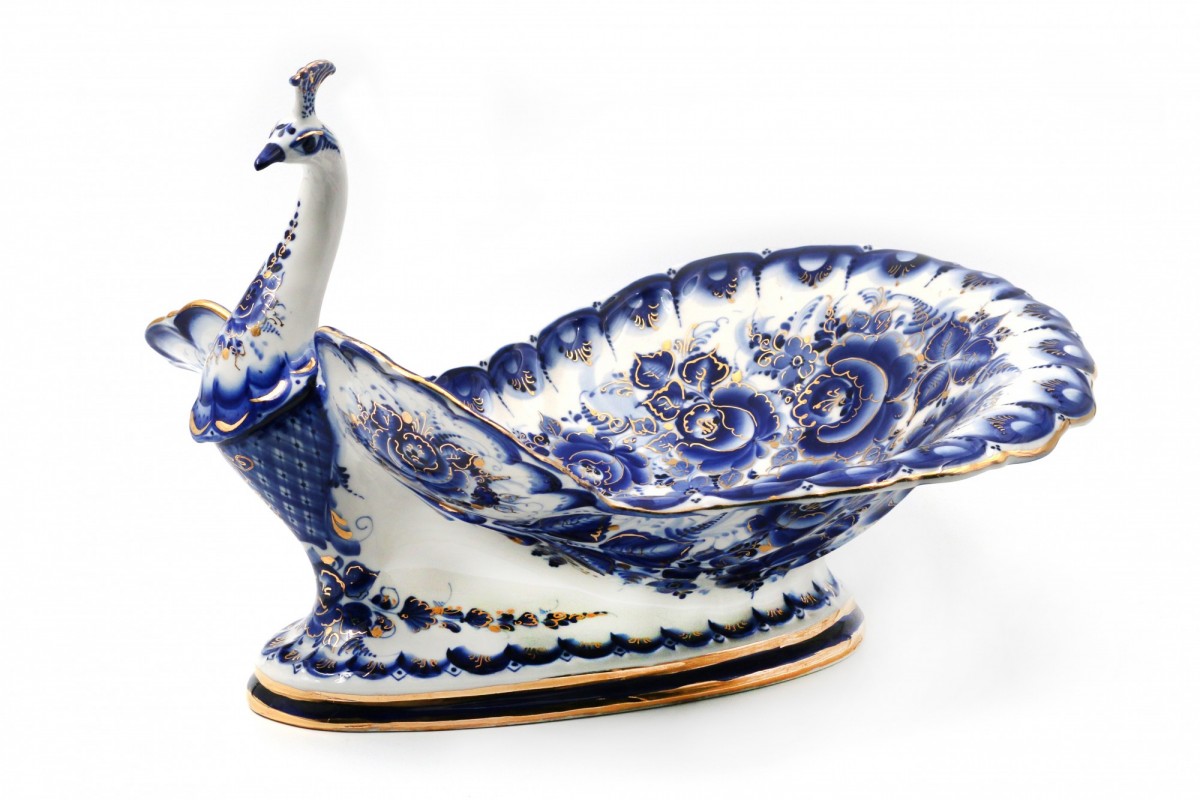 Такое вы больше нигде не увидите. Художники с натуры сделали это изделие- глядя на живых павлинов, которые разгуливают у нас в саду, продумали, технологически проработали и получили великолепное изделие.
