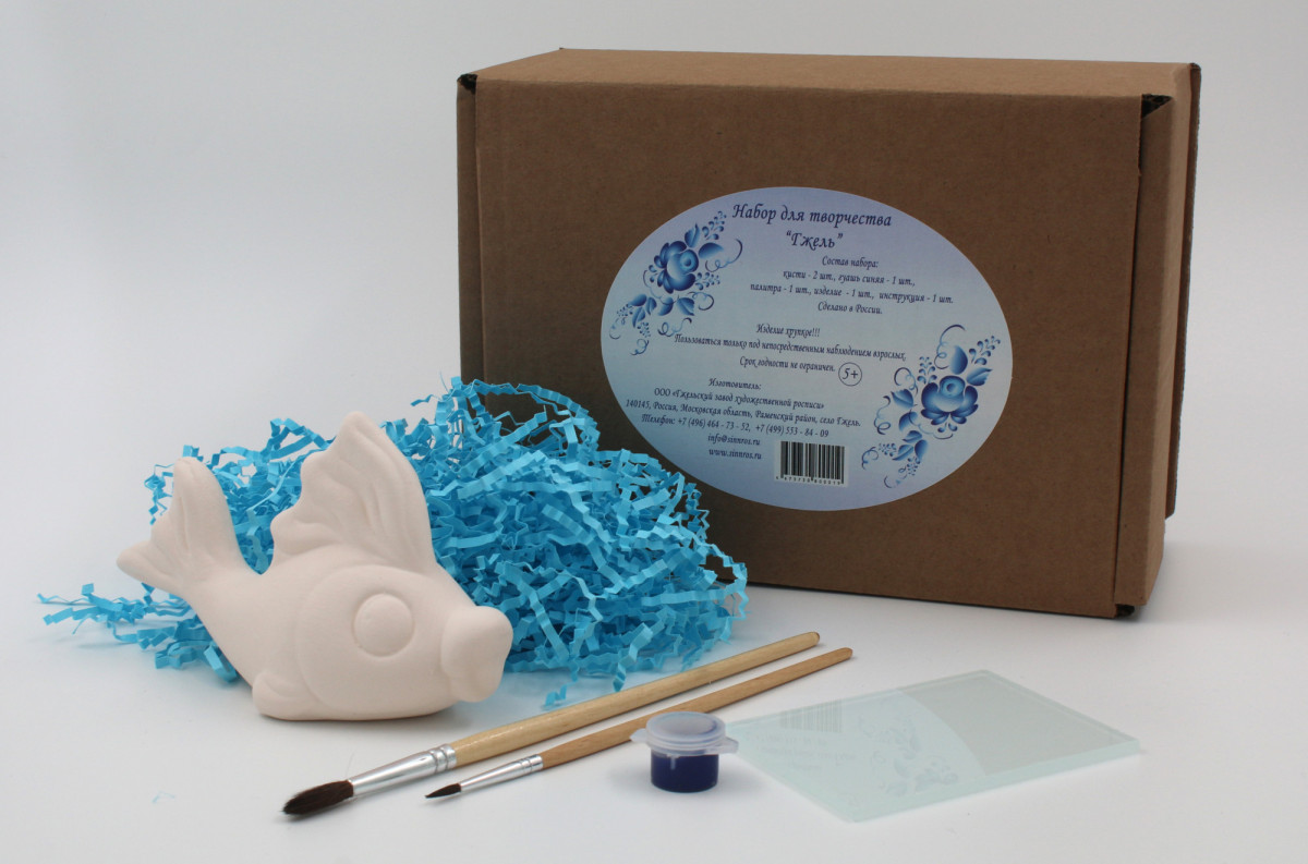 Набор для творчества «Гжель» позволит Вам и Вашему ребенку расписать своими руками красивый сувенир в гжельском стиле. Набор отлично подойдёт для творческих занятий и позволит ребёнку почувствовать себя гжельским художником – живописцем. В набор входит: изделие - 1 шт., кисти - 2 шт., палитра - 1 шт., гуашь синяя - 1 шт., инструкция - 1 шт.