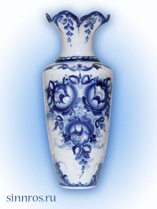 Настоящая гжельская большая Ваза в естественном синем оттенке росписи цветками Гжели. Послужит неплохим украшением интерьера.