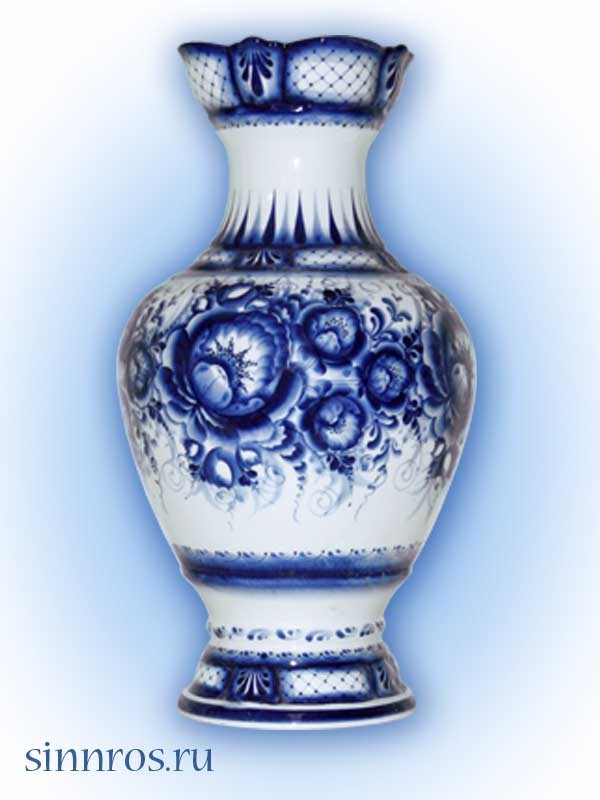Большая красивая ваза для цветов, вернее для огромного количества цветов. Интересно выполнена горловина вазы и конечно великолепна роспись